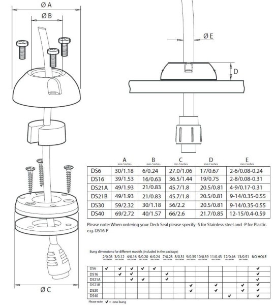 Scanstrut Kabel Durchführung DS6 - Cable seal - Kabel 2 - 6 mm, Stecker max. 6 mm, grau, 89-DS6-P