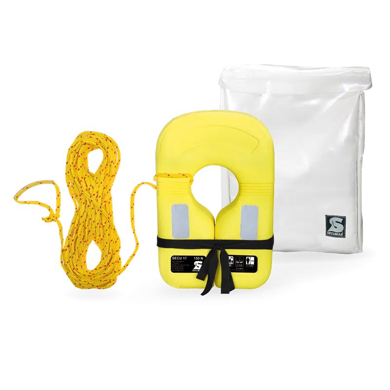 MOB-Tasche, Rettungsweste SECU 17 und Rettungsleine (30m)
