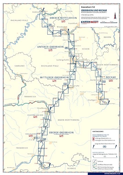 Kartenwerft Binnenkarten Altas 11 Wasserstraßen zwischen Koblenz, Basel und Esslingen - Gewässerkarte / Planungskarte Deutsche Binnengewässer - Ausgabe 2022