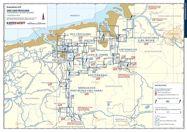 Enthaltene Revierabschnitte: Unterems, Nördlicher Dortmund-Ems-Kanal, Ost-Friesland, Leda & Jümme, Unterweser, Küstenkanal sowie Schifffahrtsweg Elbe-Weser